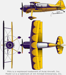Die Pitts M12 ist eine Weiterentwicklung von Kimball-Enterprises in Florida www.jimkimballenterprises.com/ und für den russischen 9 Zylinder Sternmotor M14 vorgesehen. Der in dieser M12 hat eine Motorleistung von 400 PS !! Die Flugleistungen sind dementsprechend